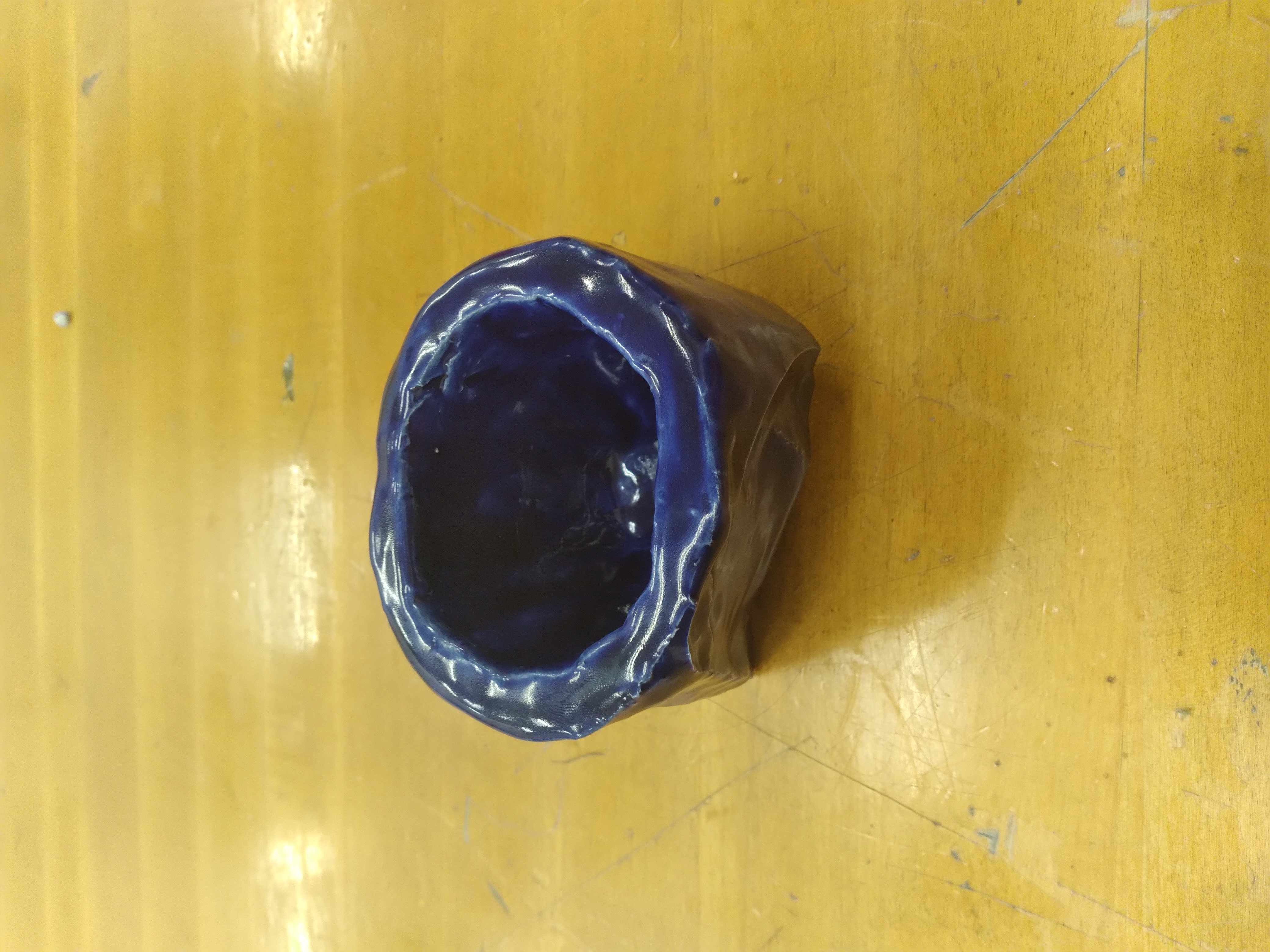 For the Glaze, I added a Dark-Blue Colored Glaze, When applying the glaze, it looked like a light-purple color but then when it came out the kiln it was indeed Dark-Blue.